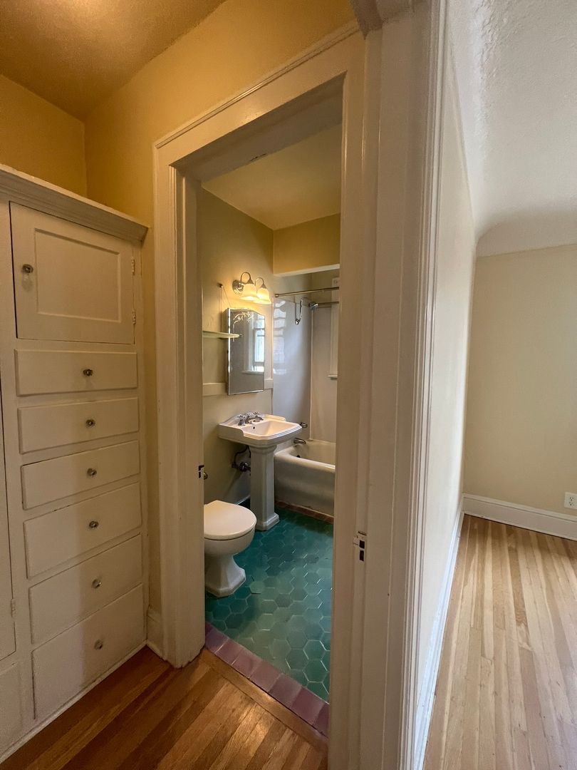 Welcome to the Flanders Apartments in the desirable NW Alphabet District, a charming studio apartment located in the heart of Portland, OR. This historic gem boasts a unique blend of vintage aesthetics and modern conveniences. The studio features hardwood flooring that adds a touch of elegance and warmth to the space. The vintage built-ins provide ample storage while maintaining the historic charm of the apartment. The custom tile floor in the bathroom adds a touch of sophistication and style. For your convenience, on-site laundry facilities are available, making laundry day a breeze. Experience the charm of yesteryears with the comforts of today at the Flanders!