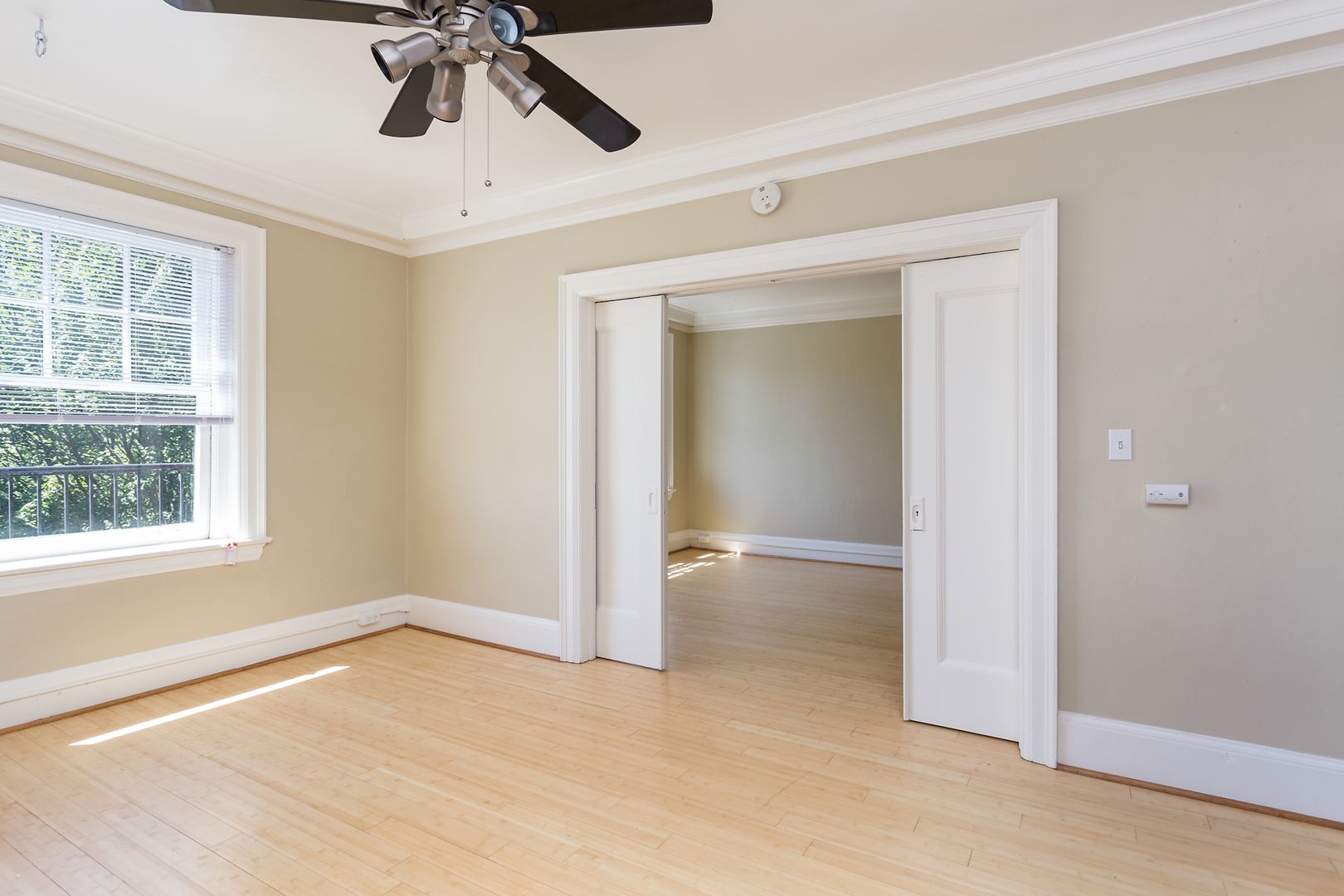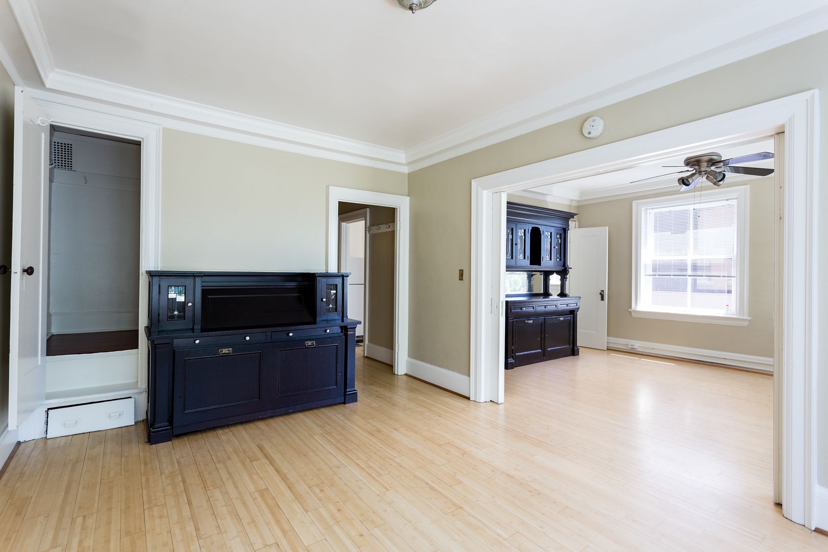 Welcome home to this charming 1-bedroom apartment at Serene Court! This cozy 1 bedroom, 1 bathroom unit features unique vintage built-ins and a claw foot tub for added character and comfort. Enjoy the convenience of a walk-in closet, ceiling fan, and trundle beds in each room for extra sleeping space. This unique floor plan features pocket doors separating the living room and bedroom for a flexible layout! With bike storage, secured entry, and on-site laundry, this apartment offers both comfort and security. Don't miss out on this opportunity to live in a historic building with classic charm. Contact us today for availability or to schedule a tour!