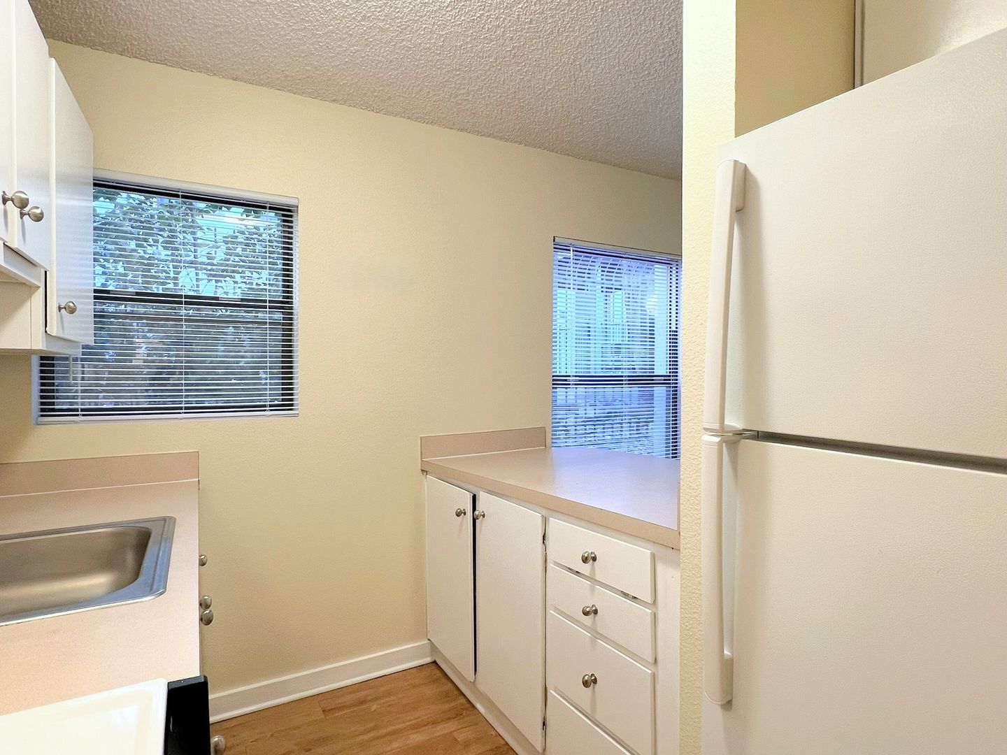 Welcome to Marcella Apartments in the heart of NW Portland! This stylish corner one bedroom apartment features luxury vinyl plank flooring, an open concept layout, large windows, and a spacious kitchen perfect for cooking and entertaining. With two large closets, you'll have plenty of storage space for all your belongings. You can minimize the need for stairs as this unit is on our ground floor. During the summers, this level stays much cooler, and stays warm in the winter! Our cat-friendly building offers convenient amenities such as a call box for guests, a large shared laundry room, a cozy tranquil courtyard, bike storage, and secured entry for added peace of mind. Enjoy the convenience of a walkable location near public transportation, making it easy to explore all that Portland has to offer. Don't miss out on this fantastic opportunity to call this apartment home!