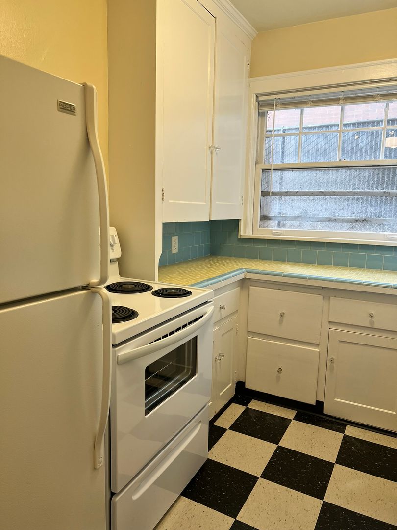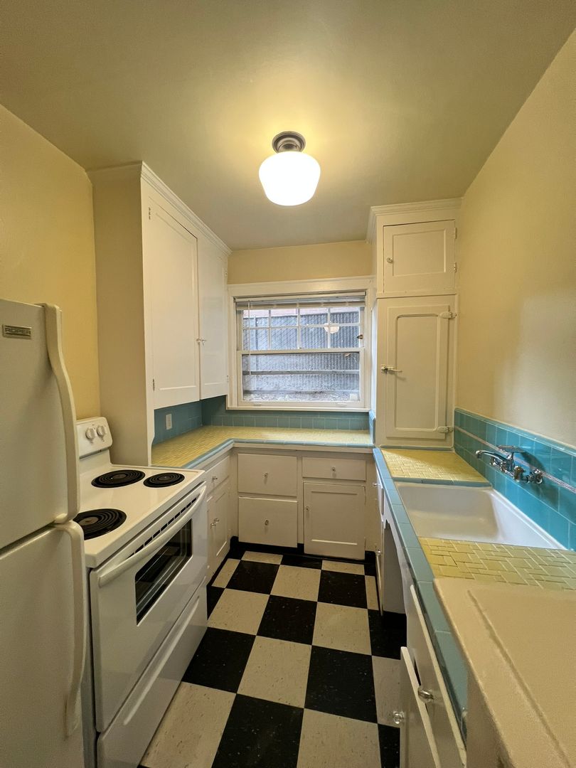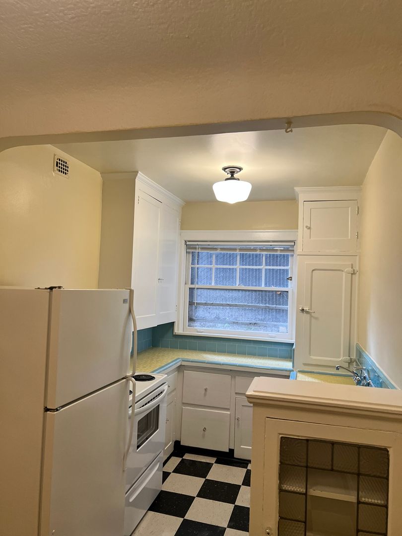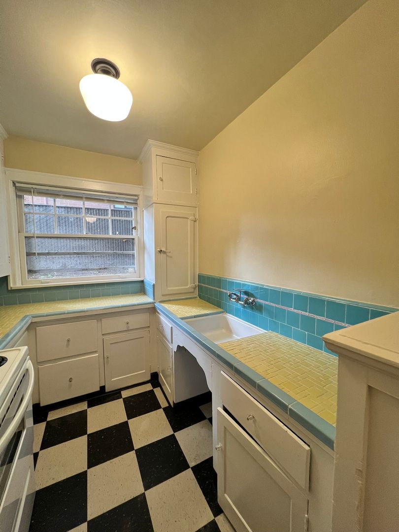 Welcome to the Flanders Apartments in the desirable Alphabet District of NW Portland! This community offers a perfect blend of comfort and convenience with this charming vintage home in an extremely walkable and bikeable location. The on-site laundry facility eliminates the hassle of laundromat trips, while the ample storage space accommodates all your belongings with ease. The hardwood flooring adds a touch of elegance and durability to the living space. The vintage built-ins and custom tile in the kitchen & bath provide a unique charm, making this apartment a standout. Just steps from nearby parks, Fred Meyer, Trader Joes, and an abundance of dining and shopping options, this home offers superior walkability to all your needs. Experience the best of Portland living at the Flanders Apartments!