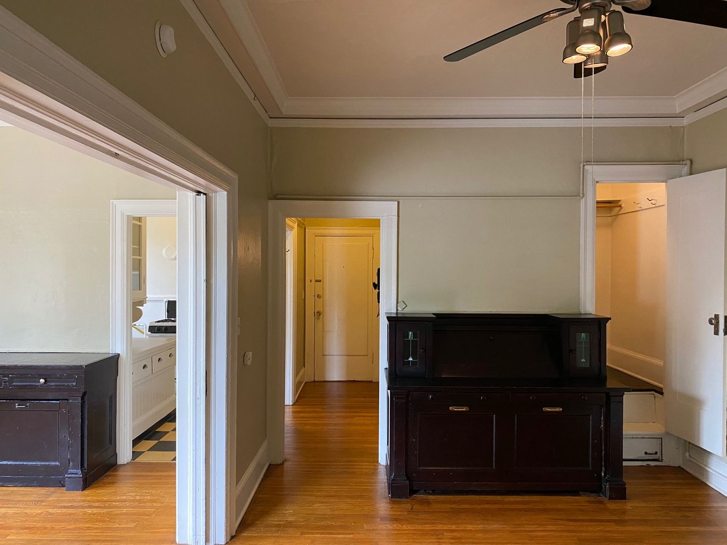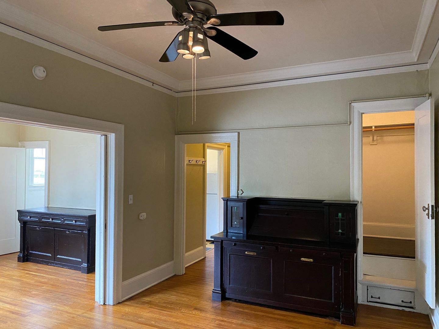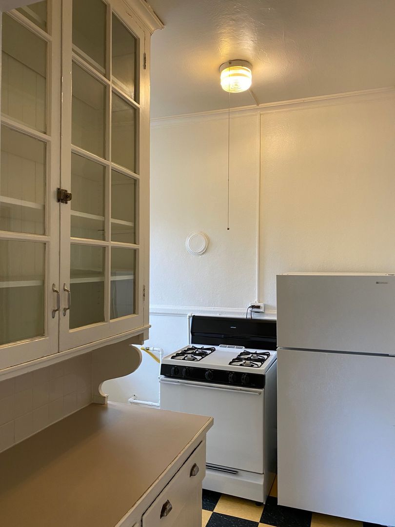Welcome home to this charming 1-bedroom apartment at Serene Court! This cozy 1 bedroom, 1 bathroom unit features unique vintage built-ins and a claw foot tub for added character and comfort. Enjoy the convenience of a walk-in closet, ceiling fan, and trundle beds in each room for extra sleeping space. This unique floor plan features pocket doors separating the living room and bedroom for a flexible layout! With bike storage, secured entry, and on-site laundry, this apartment offers both comfort and security. Don't miss out on this opportunity to live in a historic building with classic charm. Contact us today for availability or to schedule a tour!