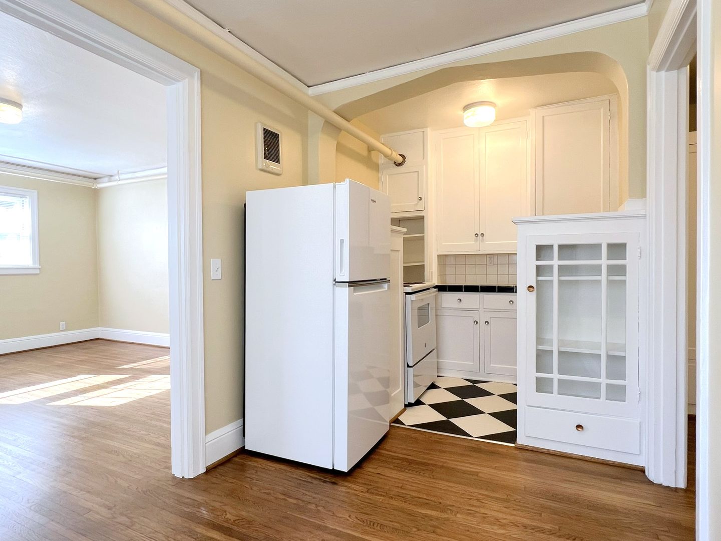 Welcome to Northrup Apartments! This 625 square-foot one-bedroom home features beautiful hardwood flooring, large windows that flood the space with natural light, and vintage built-ins that add character and charm. The spacious layout offers plenty of room to relax and unwind. the apartment is on the ground-floor, but as you can see in the photos, there is no natural light interference! Enjoy the convenience of secured entry and easy street parking in our quaint community. Take advantage of the patio area for outdoor lounging, as well as the large shared laundry room and bike storage for added convenience. Stay warm in the winter months with radiator heat throughout the apartment. Don't miss out on this wonderful opportunity to call this apartment home!